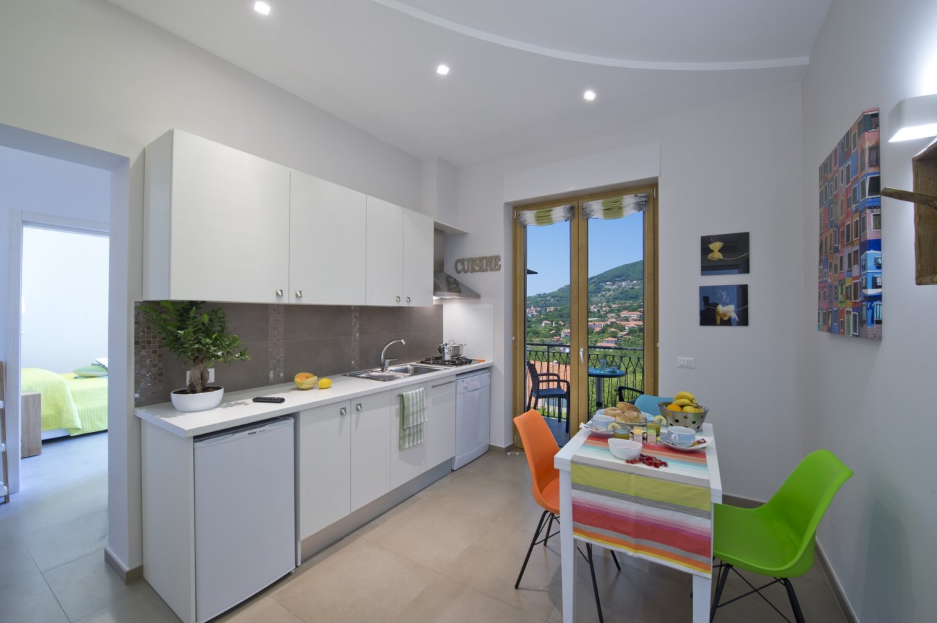 It has a double bedroom (for 2 people) plus another place in a pouf, with a beautiful view of the mountains Lattari, bathroom with shower, washing machine and a fully equipped kitchen with everything needed for cooking.